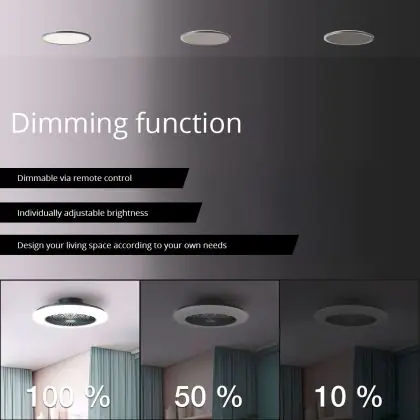 Dank seines flüsterleisen Motors sorgt der Brilliant Salerno Ventilator Plastik Metall Schwarz 36W 4700lm - 830-865 CCT+RGB | 485mm - Fernsteuerung Dimmbar für angenehme Luftbewegung ohne störende Geräuschkulisse – ideal in Räumen, in denen Ruhe gefragt ist, etwa im Schlafzimmer oder im Home-Office.