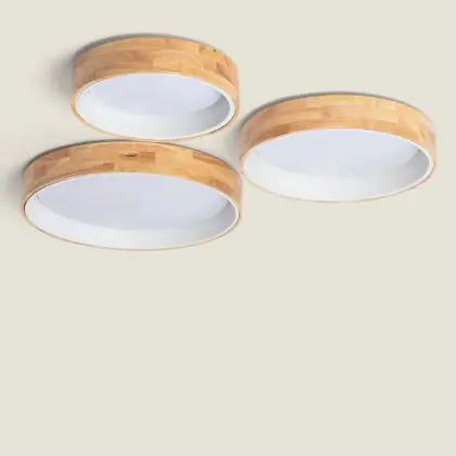 Deckenleuchte Rund Holz Metall Weiß 15W 1000lm - 830-840-860 CCT