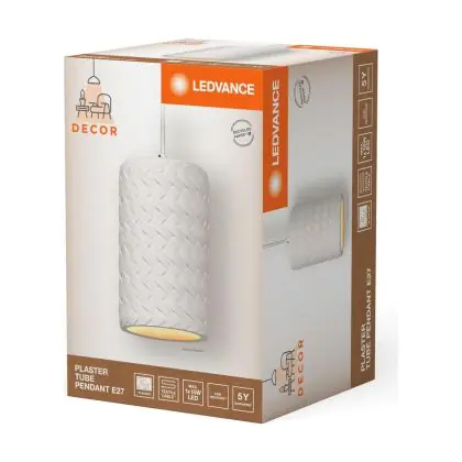 Die Ledvance Decor Gips/Stahl Röhre Pendelleuchte Weiß | Geeignet für E27 sorgt für eine angenehme Ausleuchtung und punktet durch modernes Design. Diese Leuchte ist speziell zur Montage an der Decke vorgesehen.