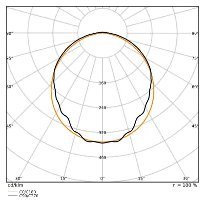 Diese LED-Deckenleuchte punktet mit einer Leuchtkraft von 8.000 lm und strahlt somit einiges an Licht aus. Die ebenfalls hohe Lichtausbeute von 135 lm/W zeugt von einer guten Effizienz. Wenn Sie die Stärke dieses Lichts mit dem Ihrer konventionellen Lichtlösung vergleichen möchten, empfehlen wir Ihnen einen Blick in unsere praktische Tabelle Lumen in Watt umrechnen.