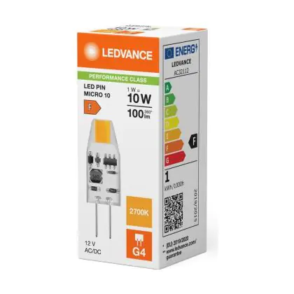 Ledvance LED Pin Micro 12V G4 Klar 1W 100lm - 827 Extra Warmweiß | Ersatz Für 10W