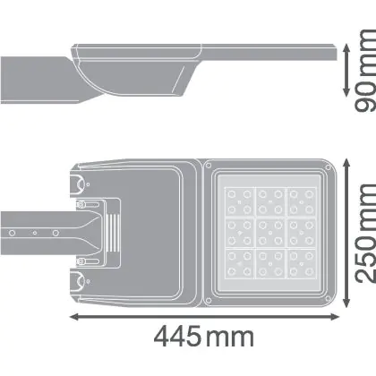 Beschreibung Ledvance LED-Straßenbeleuchtung Flex klein RV25ST Grau 25W 3370lm 25x145D - 730 Warmweiß | IP66 – Asymmetrisch