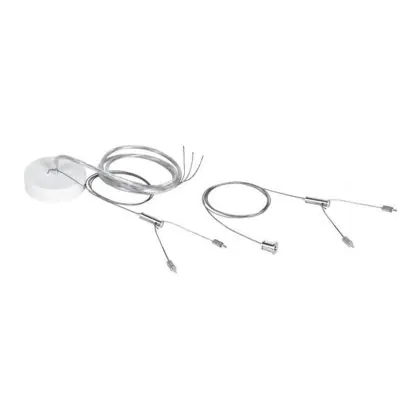 Der Ledvance Linear IndiviLED Aufhängungssatz besteht aus einer Anschlussdose, 2 Steckverbindung, Abhängestahlseile und einem transparenten Kabel. Er bietet eine schraublose Steckverbindung für eine schnelle und einfache elektrische Verbindung.