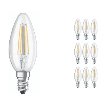 Mehrfachpackung 10x Ledvance CLASSIC LED E14 Kerze Fadenlampe Klar 4W 470lm - 840 Kaltweiß | Ersatz für 40W