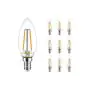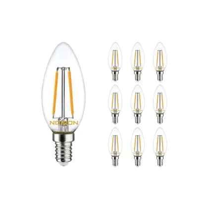 Die Mehrfachpackung 10x Noxion Lucent LED E14 Kerze Fadenlampe Klar 2.5W 250lm - 827 Extra Warmweiß | Dimmbar - Ersatz für 25W ist eine effiziente E14 LED-Lampe mit Retrodesign und der perfekte Ersatz für Ihre konventionellen 25W Lampen mit E14. Zudem strahlt sie Licht in der Farbtemperatur 2700K - Extra Warmweiß aus und punktet durch eine lange Lebensdauer.