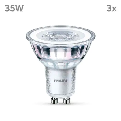 Die Lumeneffizienz des GU10 LED-Strahlers von Philips liegt bei lm/W. Herkömmliche GU10-Strahler hingegen besitzen ein Lumen zu Watt-Verhältnis von 10-15 lm/W. Somit sparen Sie allerhand Energiekosten. Hinzu kommt die lange Lebensdauer des GU10 LED-Strahlers von 15000. Somit spendet er deutlich länger Licht als ein herkömmlicher Halogenstrahler, der mit nur rund 3000 Stunden daherkommt. Das spart Ihnen zusätzlich Austausch- und Wartungskosten.