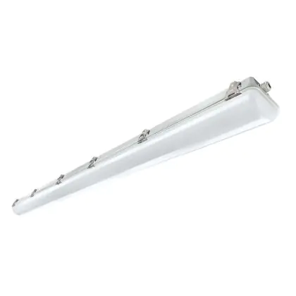 Die Noxion LED-Feuchtraumleuchte der Reihe Pro ist 150 cm lang und DALI-kompatibel und damit auch dimmbar. Sie ersetzt zwei konventionelle Leuchten à 58 Watt. Selbst verbraucht die LED nur ein Mal 58 Watt – eine schnelle Amortisation der Anschaffungskosten ist somit sichergestellt. Mit einem Wert von 4.000 K hat sie eine kaltweiße Farbtemperatur. Das Produkt ist IP66- und IK08-klassifiziert. Bitte beachten Sie: Diese LED-Leuchte kann nicht als Notfallbeleuchtung verwendet werden.
