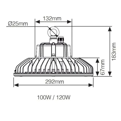 Eine der besonderen Qualitäten dieses Highbays ist seine Robustheit. Die Klassifizierungen IP65 und IK10 geben an, dass das Produkt staubdicht ist, sowie wasserdicht bei Strahlwasser aus einer beliebigen Richtung. Zudem kann es Stößen von bis zu 20,0 Joule standhalten. Dieser Wert ist in der Praxis gleichzusetzen mit einem Schlag aus ca. 40 cm Entfernung mit einem 5 kg schweren Gegenstand. Damit müssen Sie sich über lästige Vandalismusschäden keine Gedanken mehr machen.