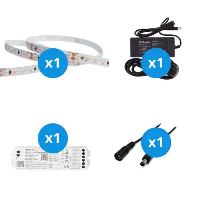 Der große Vorteil dieses Komplettsets ist, dass Sie alles Zubehör haben, das Sie benötigen, um die besten Lichtakzente für Ihr Zuhause oder Ihre Geschäftsräume zu setzen. Sie müssen nicht nach dem richtigen Zubehör suchen, sondern nur alle Elemente miteinander verbinden. Anschließend stecken Sie den Stecker in eine normale Steckdose in Ihrem Haus. Alles dazu erfahren Sie in unserem Installationsblog. Dieses Set enthält: