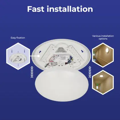 Die Noxion LED-Wand- und Deckenleuchte Corido V2 Weiß 12/16/20W 2000lm 830-840-865 CCT | IP44 ist eine Feuchtraumleuchte. Sie strahlt Licht in der Farbtemperatur aus und punktet durch eine lange Lebensdauer. Diese Leuchte ist speziell zur Verwendung in Feuchträumen (Keller, Waschräume, etc.) vorgesehen.