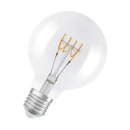 Die Osram Vintage 1906 LED E27 Globe Fadenlampe Klar 4.8W 470lm - 827 Extra Warmweiß | Dimmbar - Ersatz Für 40W ist eine effiziente E27 LED-Lampe mit Retrodesign und der perfekte Ersatz für Ihre konventionellen 40W Lampen mit E27. Zudem strahlt sie Licht in der Farbtemperatur 2700K - Extra Warmweiß aus und punktet durch eine lange Lebensdauer.