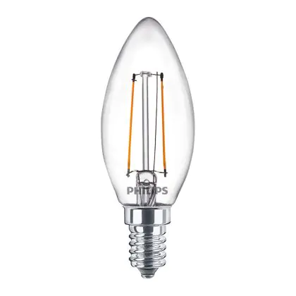 Die Philips Corepro LED Kerze E14 Fadenlampe Klar 2W 250lm – 840 Kaltweiß | Ersatz für 25W ist eine effiziente E14 LED-Lampe mit Retrodesign und der perfekte Ersatz für Ihre konventionellen 25W Lampen mit E14. Zudem strahlt sie Licht in der Farbtemperatur 4000K - Kaltweiß aus und punktet durch eine lange Lebensdauer.