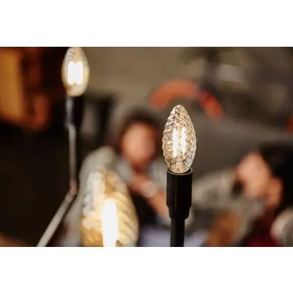 Die E14 LED-Lampe von Philips hat 2700K - Extra Warmweiß als Farbtemperatur. Als Faustregel gilt: Je niedriger der Kelvinwert, desto gemütlicher wirkt das Licht.