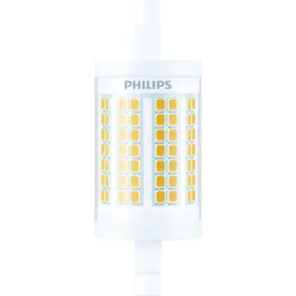 Die Philips LED Linear R7s CorePro 78mm 11.5W 1521lm - 830 Warmweiß |Ersatz Für 100W ist eine effiziente R7s LED-Lampe und der perfekte Ersatz für Ihre konventionelle Halogen-Stablampe mit 100W. Zudem strahlt sie Licht in der Farbtemperatur 3000K - Warmweiß aus und punktet durch eine lange Lebensdauer.