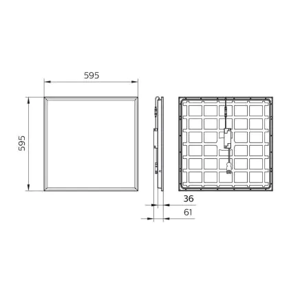 Das LED-Panel hat die Maße 60x60 cm und integriert sich somit perfekt in einen Deckenausschnitt mit der Größe 60,5x60,5 cm.