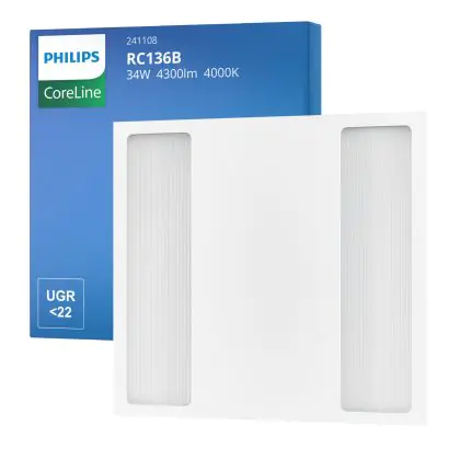 Bei dem Produkt “Philips LED Panel Coreline RC136B 25/34W 3100-4300lm - 840 Kaltweiß | 60x60cm - UGR ” handelt es sich um eine effiziente Rasterleuchte der Marke Philips, welche Licht in der Farbtemperatur 4000K - Kaltweiß ausstrahlt und durch eine lange Lebensdauer punktet.