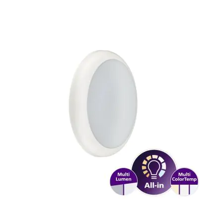 Die Philips LED-Wand- und Deckenleuchte Ledinaire WL070V Gen 2 Weiß 17W 1700lm - 830-840 CCT | 300mm - IP65 ist eine Feuchtraumleuchte. Sie strahlt Licht in der Farbtemperatur 3000K - 4000K CCT aus und punktet durch eine lange Lebensdauer. Diese Leuchte ist speziell zur Verwendung in Feuchträumen (Keller, Waschräume, etc.) vorgesehen.