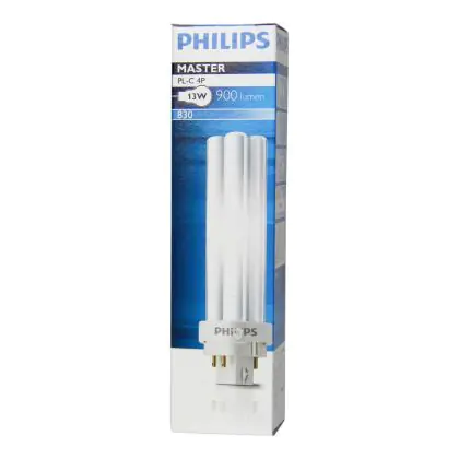 Philips PL-C 4P sind Kompakt-Leuchtstofflampen mit separaten Stromversorgungen, ohne Anlasser oder Kondensator. Dieses Modell ist sehr energieeffizient und ist mit einer 4-Pin-Buchse ausgestattet. Mit ihrer G24q-1 Buchse sind Philips PL-C 13W 830 4P (MASTER) leicht in die Leuchten zu installieren.