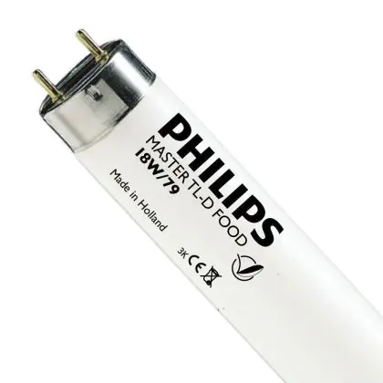 Die Philips MASTER TL - D 58W - 79 Food | 150cm ist eine Leuchtstoffröhre mit einer Länge von 1500 mm. Das Produkt hat einen Durchmesser von 28 mm. Die Röhre strahlt Licht in der Farbtemperatur 3800K - Lebensmittel aus und punktet durch eine lange Lebensdauer.