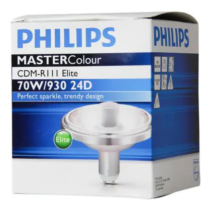 Die Philips MASTERColour GX8.5 CDM-R111 Elite 70W 24D - 930 Warmweiß | Höchste Farbwiedergabe ist eine Gasentladungslampe von Philips. Das Produkt mit einem GX8.5 Sockel strahlt Licht in der Farbtemperatur 3000K - Warmweiß aus und punktet durch eine lange Lebensdauer.