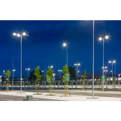 Mit ihrem hohen Lichtstrom von 10.000 Lumen bei einem Verbrauch von nur 81 W erreicht die Zephyr Large eine hervorragende Lichtausbeute von gut 123 lm/W – ideal für großflächige Anwendungen im Außenbereich.