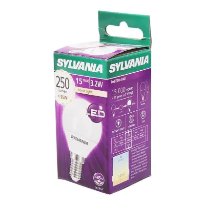 Die Sylvania ToLEDo Ball E14 Matt zeichnet sich durch einen geringen Stromverbrauch von nur 4 Watt aus. Dies ermöglicht Ihnen erhebliche Energieeinsparungen. Die LED hat einen E14-Sockel, sowie eine P45-Ballform, und spendet warmes Licht mit einer Farbtemperatur von 2.700 Kelvin.