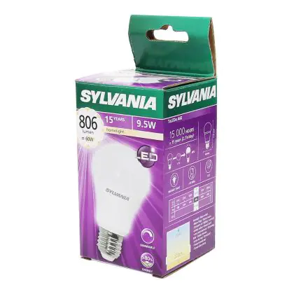 Die Sylvania ToLEDo GLS E27 ersetzt traditionelle Leuchtmittel von 60W, ist dabei aber wesentlich effiziente im Verbrauch mit nur 9,5 W. Darüber hinaus besitzt sie eine extra warmweiße Farbtemperatur und sorgt damit für eine entspannte Atmosphäre.